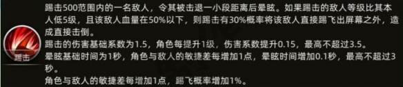 特色技能是踢击,踢击一个敌人,有概率造成控制效果。