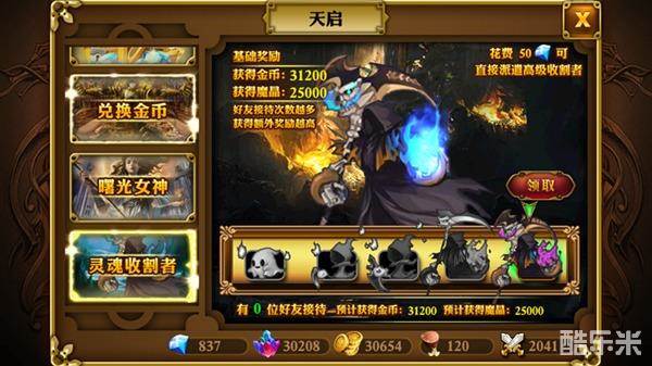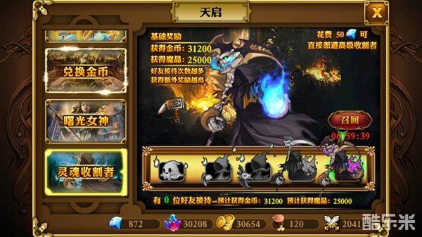 收割灵魂:灵魂收割者,别看名字恐怖,其实是个敛财童子,只需要把他派遣到朋友的城池进行旅游,就可以收取钱财喔~如果好友招待了你的恶魔,那他就会给你带回来更多的金币~总结来说,这是一个与好友简单交互即可获取金币的休闲玩法。