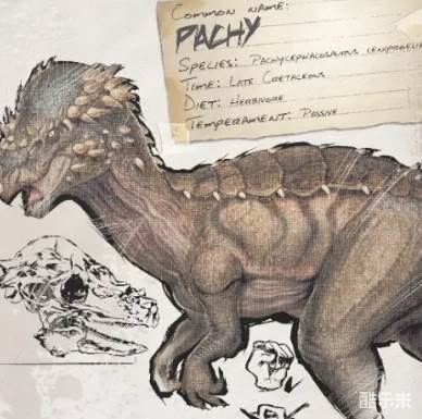 肿头龙在岛上草原、丛林中比较常见,靠近时不会攻击,具有群体意识,当攻击个体时附近的肿头龙都会来攻击你,肿头龙头部拥有很厚的头骨,有比较高的减伤效果,攻击对手增加眩晕值,顺便提一下生存者眩晕值涨到50就会倒地,前期如果想要一只肿头龙,附近肿头龙又不止一只就要当心了。