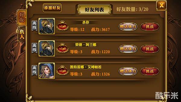赠送体力:在好友界面中点击"赠送体力"即可赠送其10点体力,每位好友每天只可赠送一次。