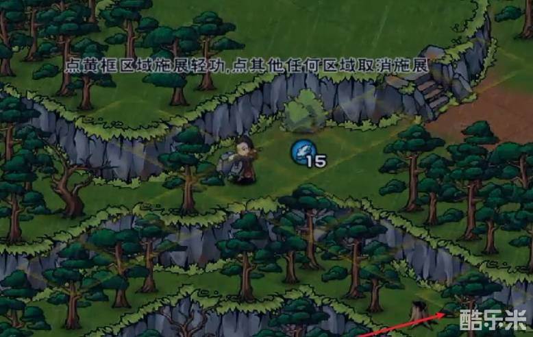 4、通过轻功一格一格地往下跳,就可以来到扇子崖底。