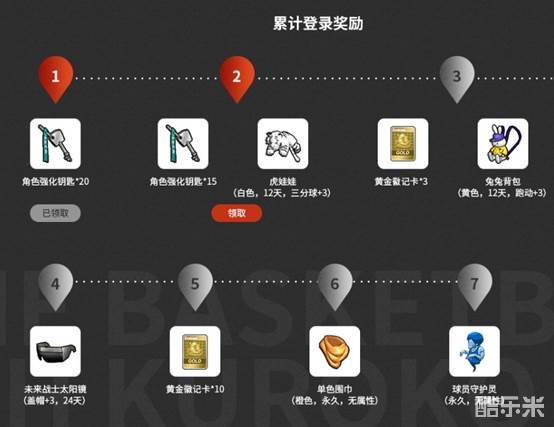 老玩家该回归啦!老玩家可以参与《黑子的篮球》专属回归活动,活动期间登录游戏的回归账号可领取累计登录道具,可以连续签到7天领取奖励,奖励包括角色强化钥匙以及时限道具等。