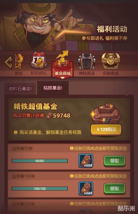 最后简单来说下精铁基金,一般玩家都不会很缺精铁,因为装备进阶不像等级进阶有那么多次,所以说没必要购买。