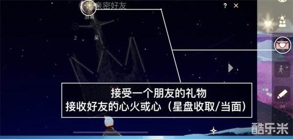 1.接受一位好友的礼物:接受好友的礼物,就是指收取好友的心火或者心,通过星盘收取或者当面收取都是可以的,完成第一个任务。
