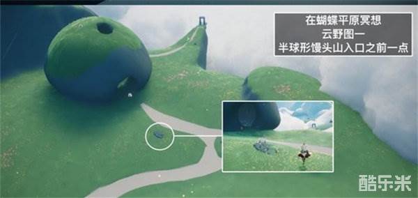 4.在蝴蝶平原的神坛旁冥想:今天冥想的位置在蝴蝶平原,云野图一半球形馒头山入口之前一点的位置打坐并留言,完成第四个任务。