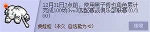 使用该角色完成100场比赛可以获得道具:虎娃娃(白色,永久,自选能力+2)