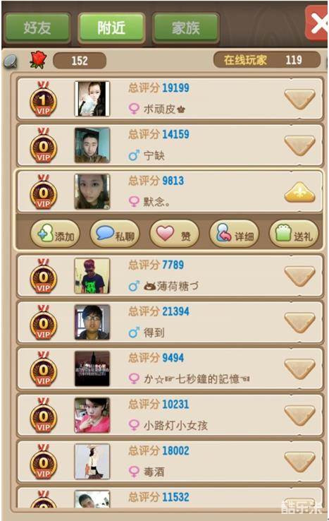 2、打开附件玩家的列表,即可添加附件玩家为好友哦!当然,附近玩家除了添加好友的功能,还可以进行私聊、点赞的功能哦,更多玩家等你来体验!