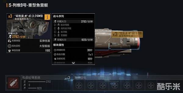 1、新护航艇列维9号,可以购买ac721-te载机型获取,它的重型鱼雷艇的机载投弹系统中配备了名为“超新星-M”的鱼雷轰炸系统,这是经由卡利斯托-重型鱼雷袭击舰所搭载的“超新星-白K”反舰鱼雷改造而来,因此针对大型舰船的输出也同样堪称恐怖,唯一美中不足就是输出时间过长。
