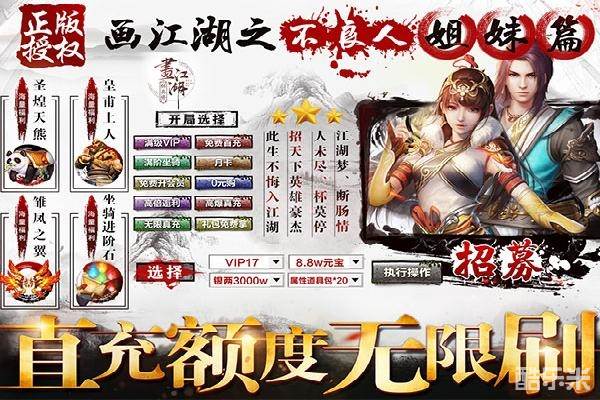 1、上线福利:充值比例1:1000!上线送VIP17直升卡、8.8w元宝、银两3000w、属性道具包*20