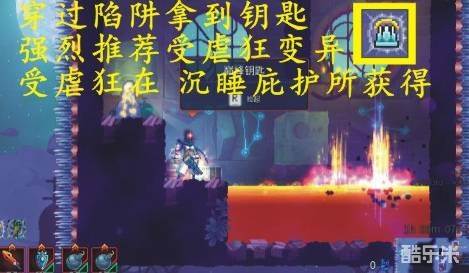 2、需要穿过陷阱拿到钥匙。(可以直接摔死,直接复活到钥匙点)