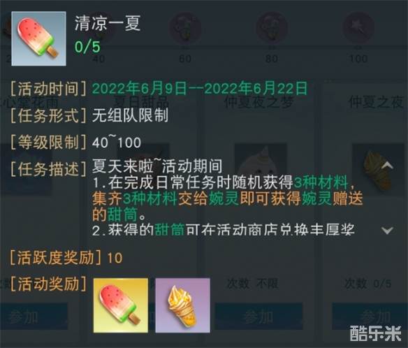 小暑已至,烈日当空,坐家中畅享冷饮甜品,乃是夏日里的一大乐事。 6月23日-7月6日期间,少侠们只要上线登录游戏,即可领取水果蛋糕,第七天达成指定条件后,还可额外领取仙灵宝玉和大禹之灵哦。