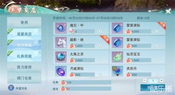 炎炎夏日怎么少得了清凉甜品!活动期间,少侠们完成每日的日常任务后,将随机获得的3种材料,提交给婉灵,即可获得缤纷超级甜筒与水果蛋糕。获得的甜筒和蛋糕,可以前往【声望商城】界面进行兑换,雷音溟钻、超影·绝、圣灵软玉等超值奖励。