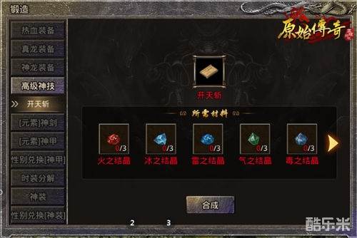 2、开服31天后开启神技大师开放开天斩合成,所需材料神技书页;