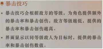 暴击技巧的加成,却是第一次见的玩法,它是根据角色的等级和敌方角色等级决定的