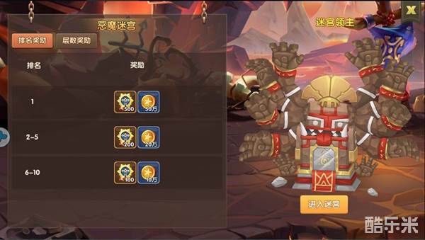 除了刚刚提到的最终BOSS专属奖励,恶魔迷宫还有排名奖励、层数奖励两种奖励哦,排行奖励会根据冒险家爬到迷宫第八层花费的总时间计算,奖励非常丰富,冒险家大人们不要错过哦。