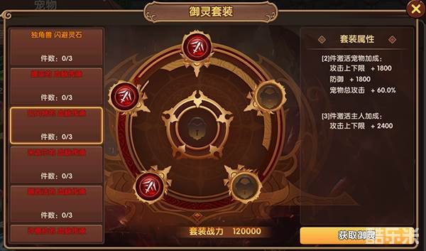 这里需要注意的是御灵是有套装属性的——同种类、同颜色的3个和2个对应不同的属性,是百分比加持,