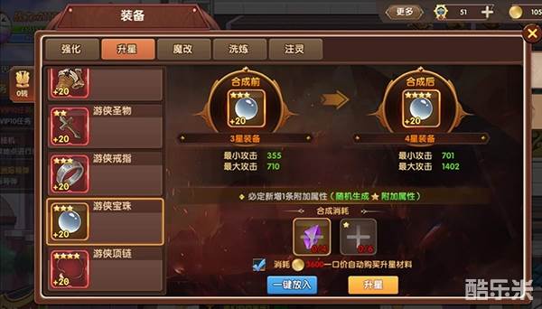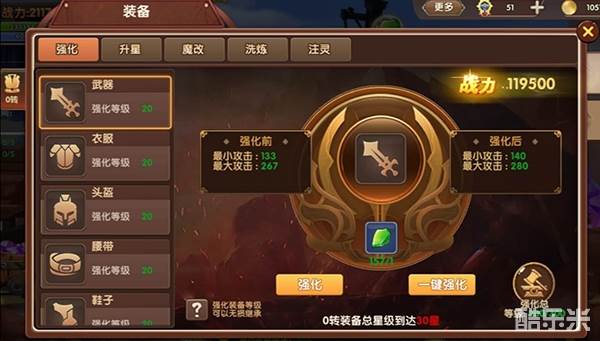 0转装备的最高星级上限为5星,每一次提升星级,都能提升装备属性,并且还能为装备新增一条附加属性,从而获得高额的战力提升。