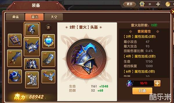 5.套装打造套装打造是当冒险家的等级提升到LV100时解锁的新系统,通过收集不同前缀的装备锻造材料,可以使装备获得额外的提升,每当锻造到同阶的装备达到2、4、6、10件时,就能获得额外的套装属性加成,提高战力。