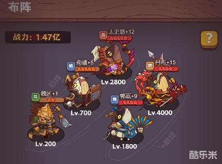 1号位,吕布,核心输出。装备等级拉满。鱼灵:无双>千年笛>蓝心胖头。这关一定要选择减伤高的鱼灵,避免被关羽大招切死。