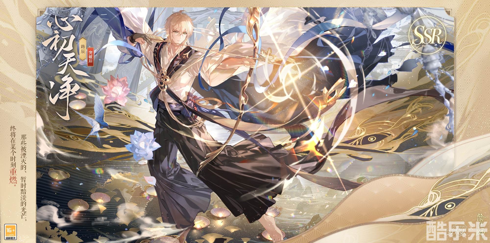 SSR画灵[心初天净]属特殊联动画灵,具备获取时台词特别展示;突破后具备横幅卡面、[流光]效果,可设为登录界面。