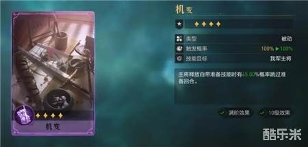 而机变和灵光乍现的作用,等同于能把准备技能变成直接发动技能,变相提升发动概率,所以这个技能适合固有技能为准备技能,并以此为主要输出的英雄,如孙武、诸葛亮。