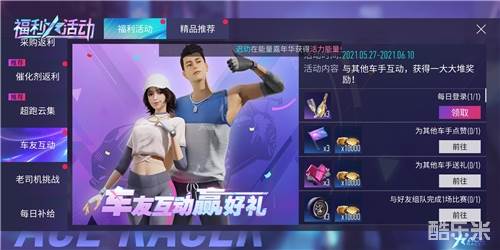 车友互动是一项长期成长任务,其中为其它车友点赞、组队完成比赛、给车友送礼等任务均会奖励大量金币,同时还有轮毂、锦标旗等紫色道具。