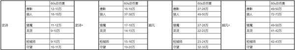 这也是在测试中的一点特殊发现,比如说大家看我图表中有写着部分猎人手动和非手动的伤害数值。比如说龙灵,在你非手动状态下,她的终结技能有的时候会强行等三段然后半天不释放,但如果你手动时,可以一段一段的放。多次的一段伤害未必就比直接的三段差,而且对于只有1分钟时间限制的副本,确实手动一段释放觉醒技伤害效果更好。