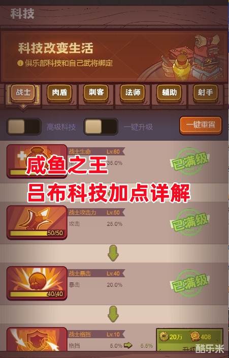 《咸鱼之王》吕布科技加点详解
