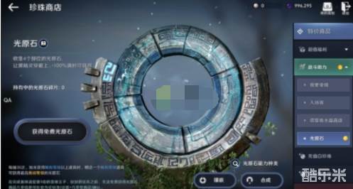 2、完成主线第九章后开放光原石,游戏中装配光原石可以获得攻击、防御、攻速、暴击率等方面的加成,提升大家的战斗力。可通过同品质同部位光原石进行强化。
