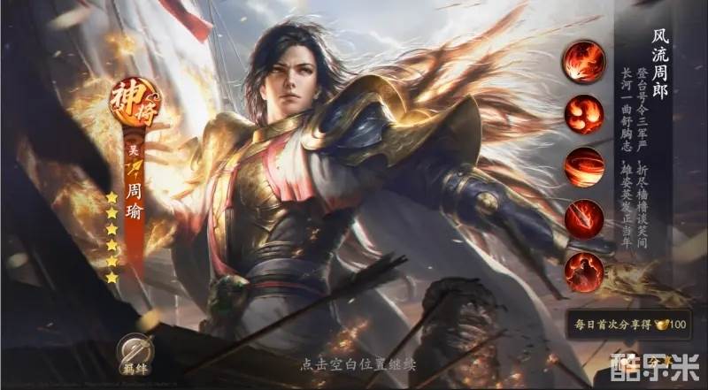 周瑜通过主动技能的爆发伤害,配合其他爆发类武将组成“动如雷震”羁绊,可以对敌方单体造成毁灭性的伤害。
