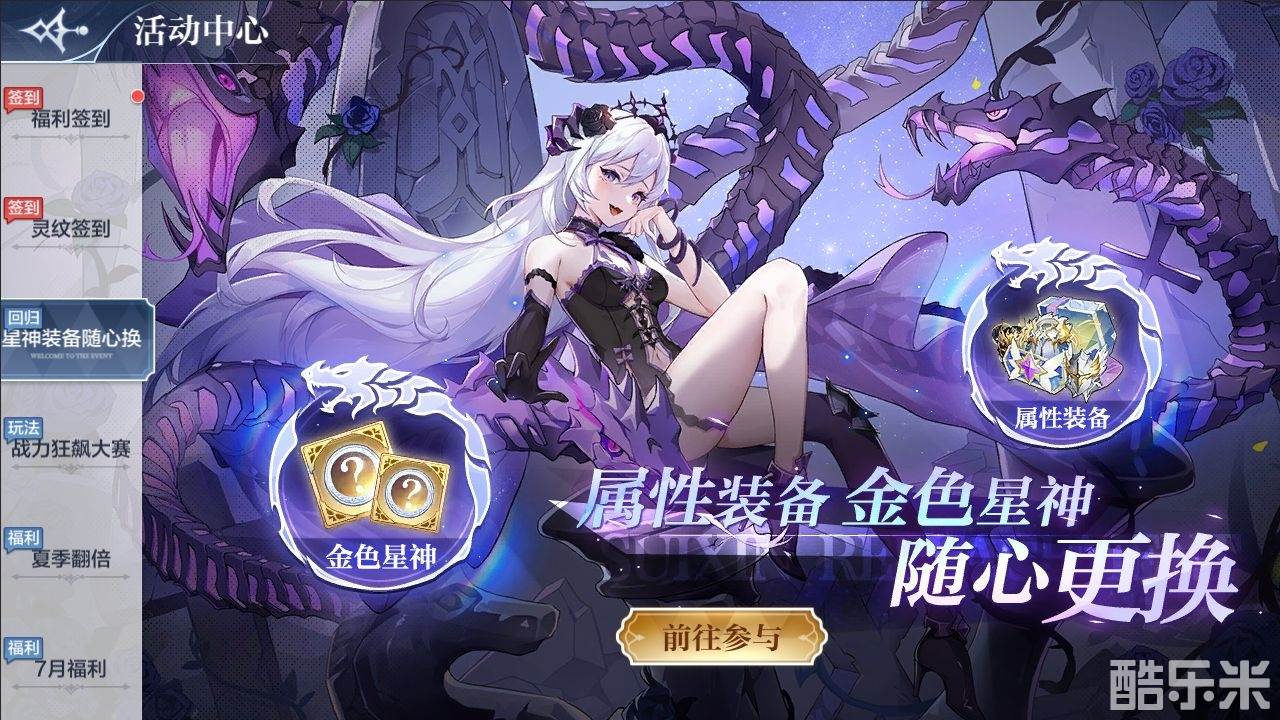活动内容:属性装备、金色星神随心更换,限时返场!