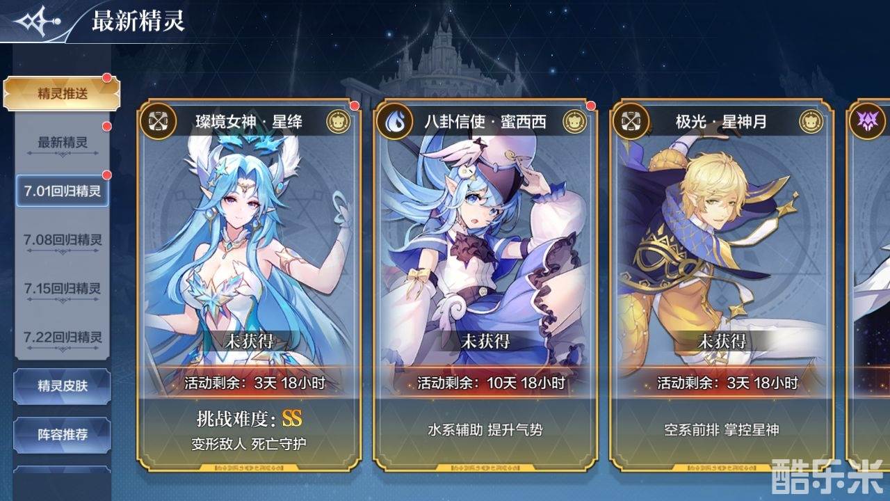 开启上榜精灵:莱莉丝、大师九九、智慧圣魂、神祇帝释天;2022年7月1日前推出精灵暂未开启精灵战力和精灵获得榜