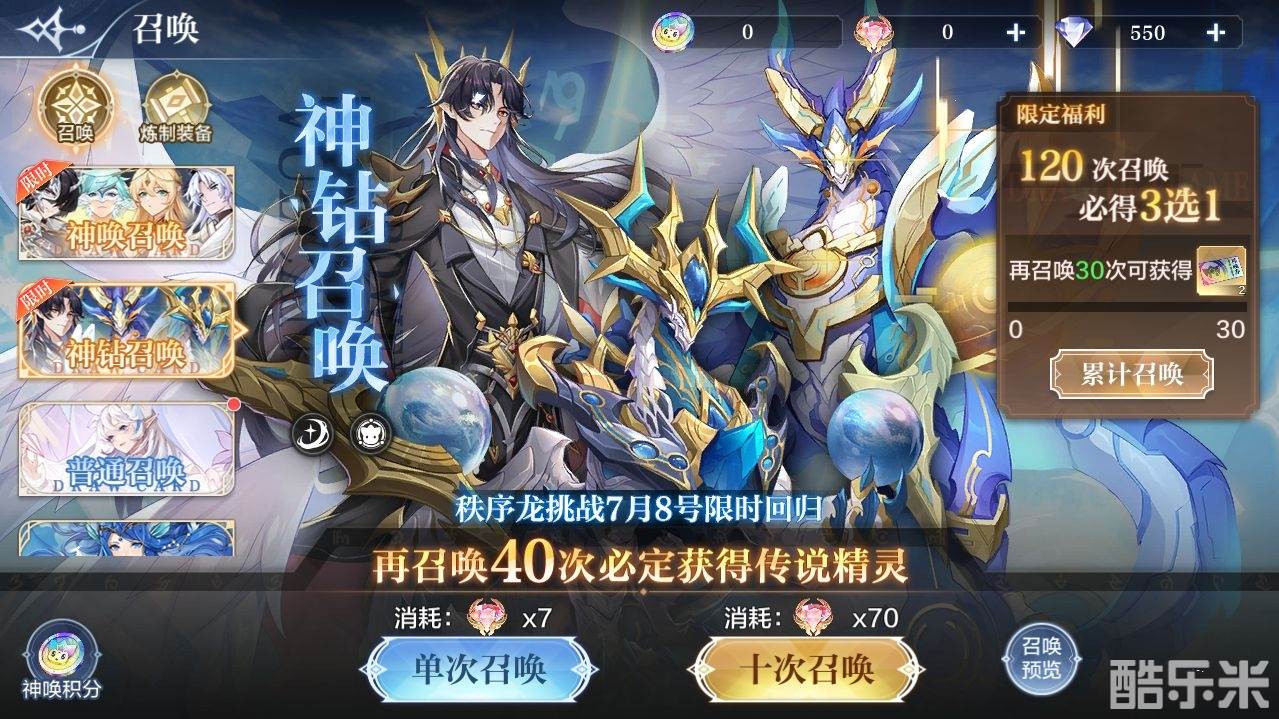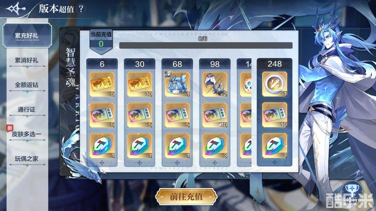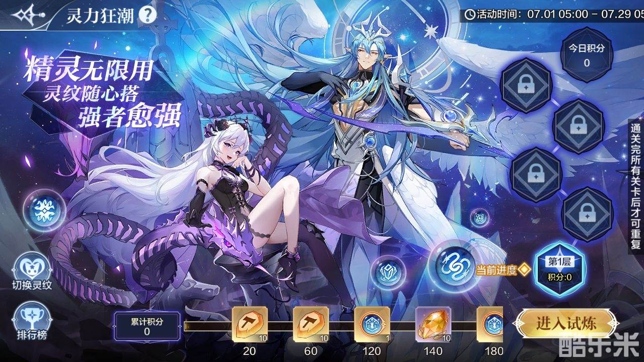 活动内容:新版累充活动上线,在活动期间内,所有充值均计入累计充值,达到累计金额即可领取奖励:智慧圣魂(7.15神唤卡池UP召唤获得)、智慧圣魂觉醒魂、智慧圣魂神器宝箱、水系传说之魂、传说之魂、精灵皮肤任选箱(超神龙、次元龙、星绛、秩序女皮、修尔皮肤、爱心皮肤、龙尊皮肤、五王、传说之魂自选)、金色星神、橙+1装备、神唤券、神炼石等惊喜奖励!