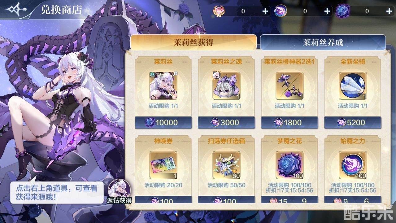 ②参与对决莱莉丝,达成每日任务可获得梦魇之花和始魇之力