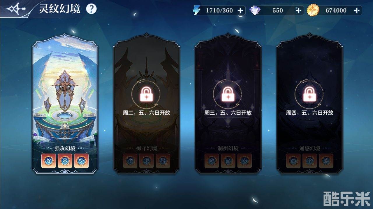 其中一共有4种幻境,分别是:强攻幻境、御守幻境、制衡幻境、通感幻境,分别在每周一、二、三、四开启,每周五、六、日将全部开启。灵纹幻境分为单人模式、组队模式2种模式。快叫上你的小伙伴,一起挑战吧!