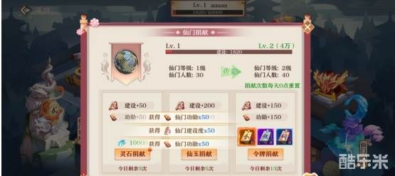 1. 玩家可以通过捐献物品来升级仙门