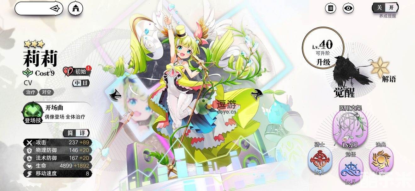 1、莉莉是游戏中的一个三星奶妈,在零解语状态下,登场技即为全体按自身生命值20%治疗,觉醒后按照队友的数量叠加提升自身生命值3%治疗全体(持续15s),每10s治疗自己和生命比例最低的队友。