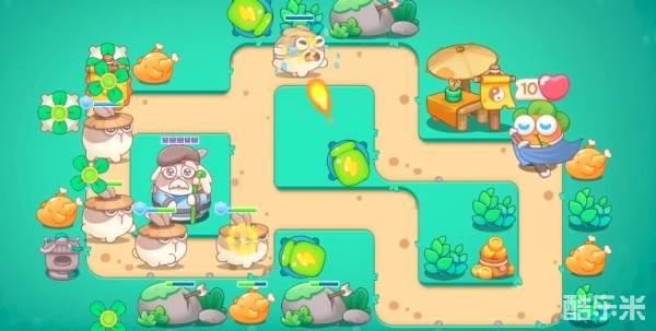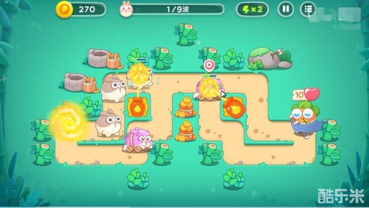 6.卧兔藏龙第30关共有九波敌人,需要应对六种兔子,其中小偷和木桶兔子需要注意集火,而乞丐兔子需要吃饱5个烤鸡才能走,因此要用瓶子炮尽可能快的把烤鸡打出来,瓶子炮最快。乞丐兔走了之后,会额外增加4个炮塔,后面就非常简单了。