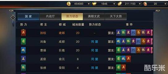 上兵伐谋, 其次伐交, 其次伐兵, 其下攻城。在《血染征袍》的世界中,你有魏蜀吴三大基础阵营可以加入,无论是心仪仁义之君刘玄德、奸雄之才曹孟德还是碧眼紫髯孙仲谋,这三位君主都可以成为你效忠的对象。有了阵营之后,我们自然可以跟同阵营的其他玩家结盟,结盟的过程便是贯彻自己战略思路的过程,远交近攻是我们最基本的原则,安定了周边势力之后,自然可以进一步开拓疆土。