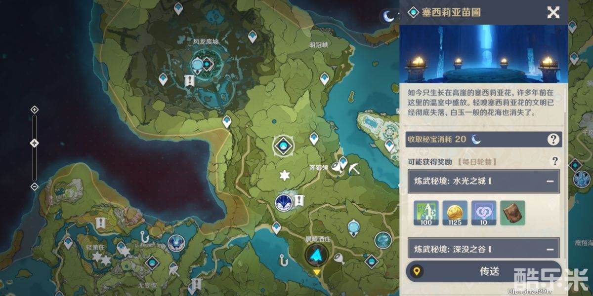 ①直接传送至蒙德武器本【塞西莉亚苗圃】