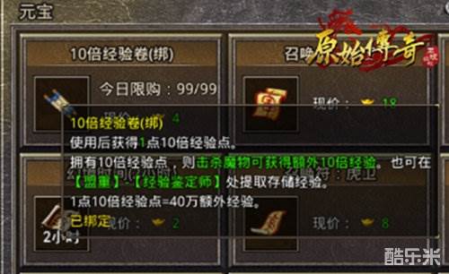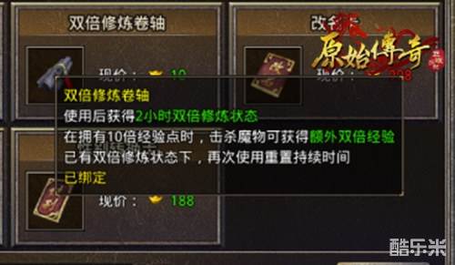 双倍修炼卷轴的来源只能通过商城花费10元宝进行购买,在前期的升级中起很大的作用,在使用十倍经验卷的同时额外获得两个小时的双倍经验!