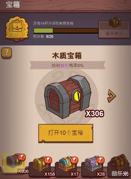 首先是每天做任务推图刷出的宝箱,除了用十个木质宝箱完成一次任务,其他的宝箱都不要开。