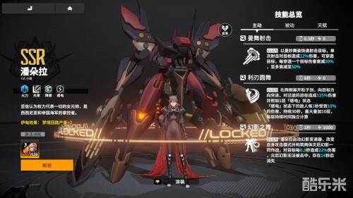 潘朵拉是使用光束武器的能量(蓝色)属性火力骑士,行动灵活,输出能力强,技能「利刃圆舞」可储存三段位移,向目标方向突进,对沿途目标造成125%伤害,并附加感电状态。潘朵拉每次成功附加感电状态,还可额外提升自身攻击力。战技「幻影之舞」构筑两个灾厄幻影一同作战,且灾厄幻影无法被敌方击中,可存在14秒,一定程度上可以保证自身生存,也不会有大招浪费的风险。潘朵拉每次攻击命中目标,还有概率提升伤害,增伤效果显著。