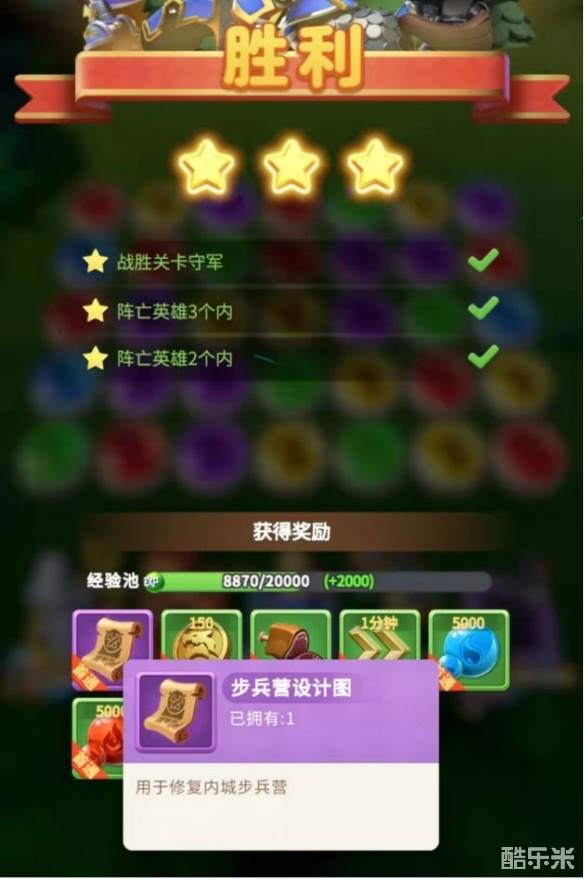 来到这里,我们之前训练的士兵差不多完成,增强实力后就可以轻松击败门口的黑暗军团小队,随后是和铁骑盾卫、炸弹鬼才的两场三消战斗,如果觉得战斗有难度,可以先通关几场冒险,积累经验给英雄提升等级后再行挑战。