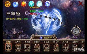 星座系统是依赖于12星座的起源和特性设计的一个提升玩家战斗力的系统,里面有12属性一一对应于12个星座。升级不同的星座,玩家能相应的提高对应的属性值。