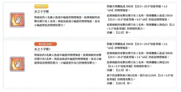 短评:专武后十字斩伤害相当于提升至原来伤害量的1.5倍,并且增加了小倍率的永续加攻,看起来提升不是很大。