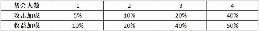 3.同帮会成员在同一线路时触发攻击加成和收益加成的增益属性。
