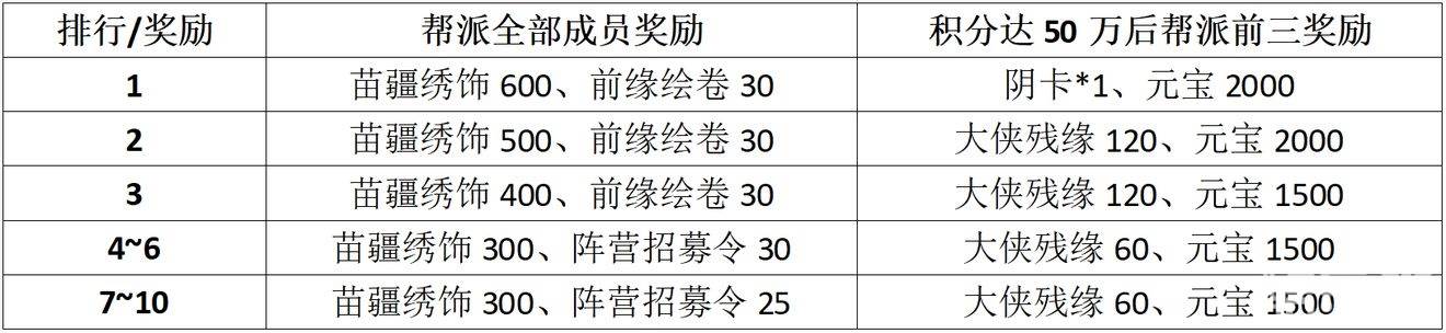 3.帮派进度榜排行奖励