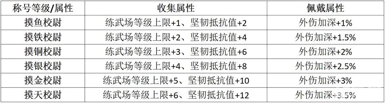 附:摸鱼称号各级属性