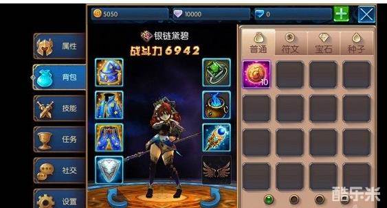 背包分为普通、符文、宝石和种子4个包裹,分别存放不同类型的物品。